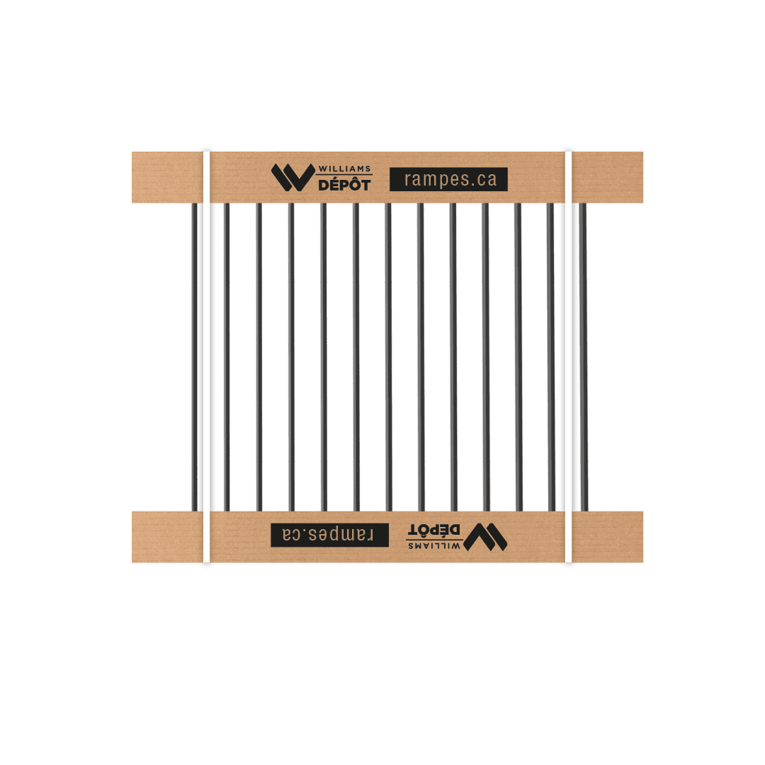 L’ENSEMBLE COMPREND : 1 garde-corps assemblé : 1 main courante (1 1⁄2’’ x 1 1⁄2 ‘’). 1 profilé du bas (1 1⁄2’’ x 1 1⁄2 ‘’). 4 crans de fixation. Vis autopercantes.